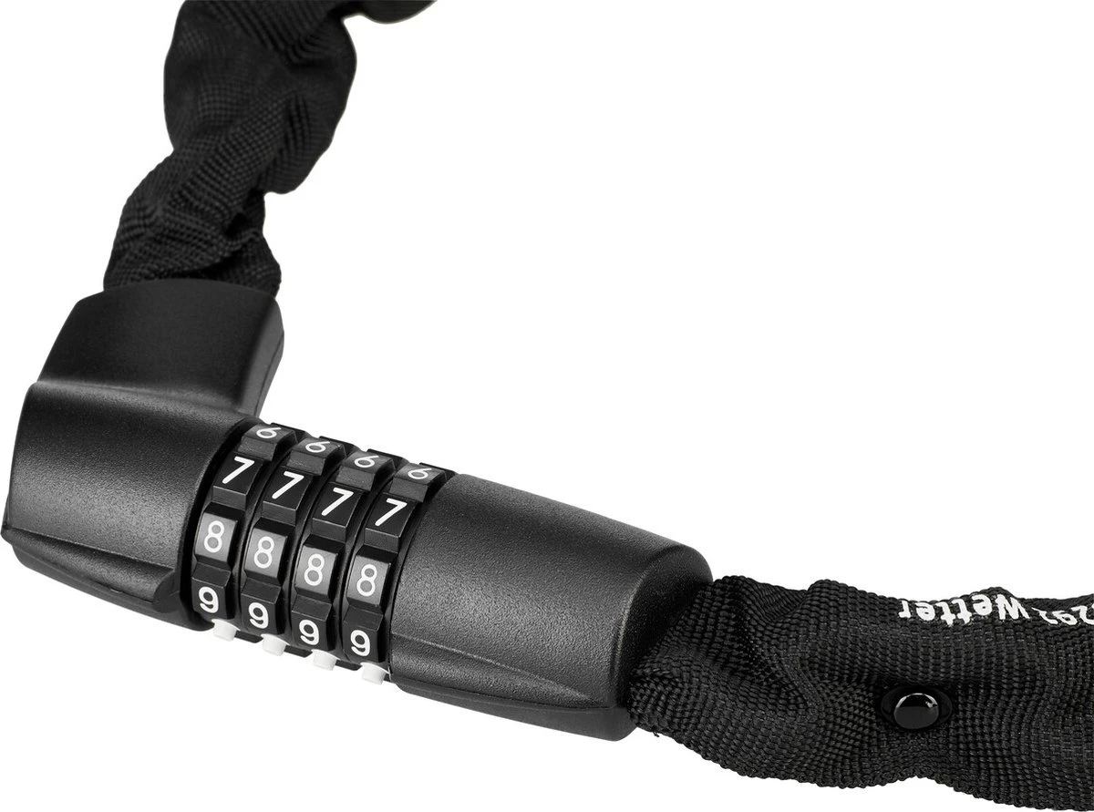 Stevig kettingslot met cijfercombinatie van het merk Abus. De ketting bestaat uit ronde schakels van 8 mm dik met een kettinghoes, zodat jouw fiets niet beschadigd wordt. De cijfercombinatie is zelf in te stellen en de cijfers vervagen niet.
