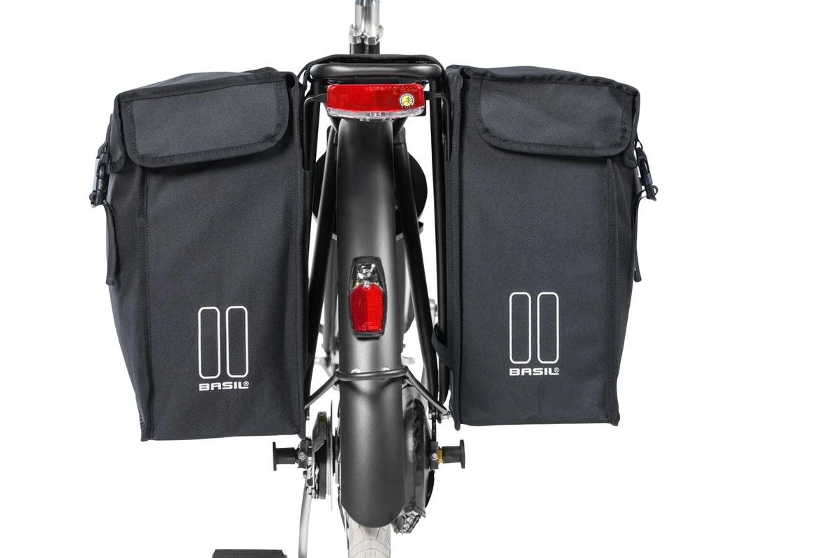 De stevige Basil Distance Holder zorgen ervoor dat je met jouw dubbele fietstas veilig kunt fietsen. De naam zegt het al, deze zwarte afstandhouder voorkomt dat de dubbele tas tussen de spaken van je fiets komt. Zelfs bij zwaar beladen fietstassen! De afstandhouder schuif je in de afstandhoudervoorziening van de fietstas. Zit de afstandhouder voor je achterlamp? Geen zorgen, je kunt ook een achterlamp op de standhouder monteren (50-80 mm). De volgende Basil dubbele fietstassen hebben een afstandhoudervoorziening en zijn daarmee geschikt voor de afstandhouder: Basil Urban Load dubbele fietstas zwart/zwart Basil Urban Load dubbele fietstas zwart/reflective Basil Urban Load dubbele fietstas groen/wit Basil Urban Load dubbele fietstas grijs/geel Basil Mara XXL dubbele fietstas zwart Basil Mara 3XL dubbele fietstas zwart Basil Kavan dubbele fietstas zwart Basil Kavan XL dubbele fietstas zwart Basil Forte dubbele fietstas zwart Basil Forte dubbele fietstas blauw Eigenschappen: Veilig fietsen met de Basil Distance holder. Voorkomt dat de dubbele fietstas in de spaken van de fiets komt. Geschikt voor een achterlampmontage.