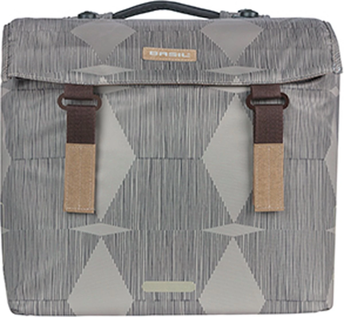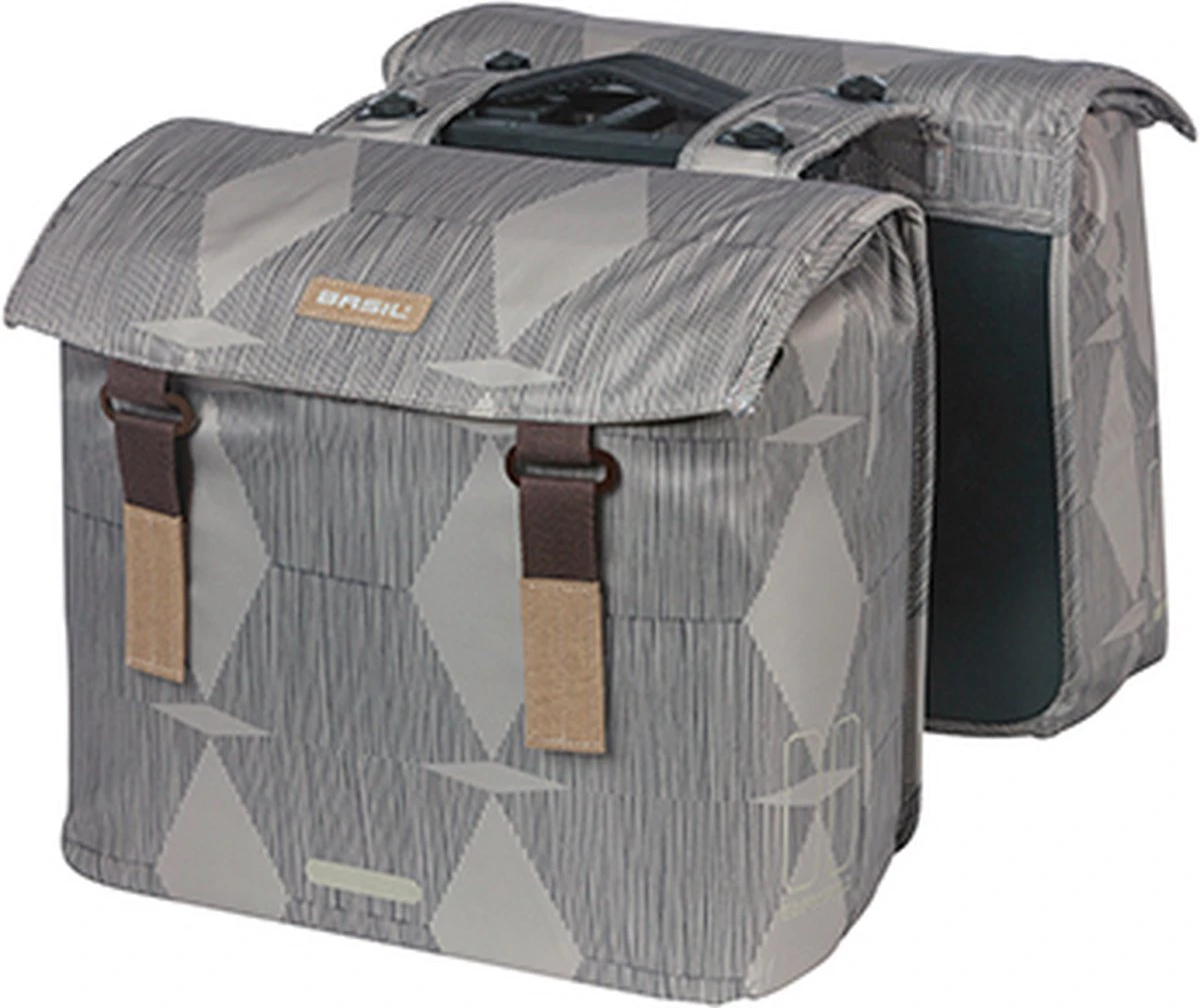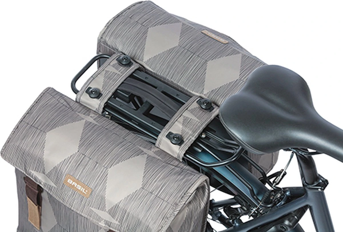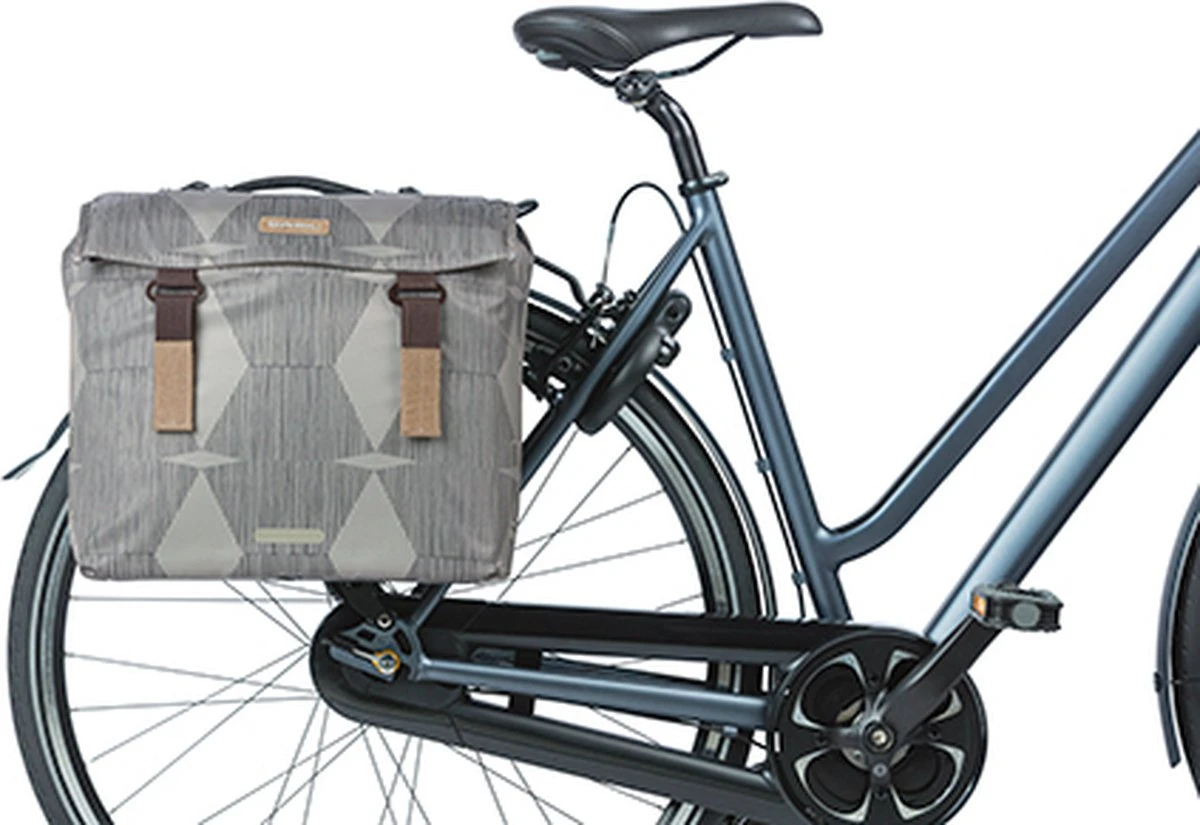E staat voor Elegant en Eco bij deze dubbele fietstas. De tas is chateau taupe van kleur en heeft een inhoud van 40 tot 49 liter. Daarom is de fietstas ideaal voor een bezoek aan de markt of de boekenwinkel. Het binnenritsvak is ideaal om je portemonnee, sleutels of andere waardevolle spullen in op te bergen.