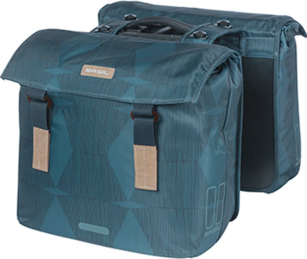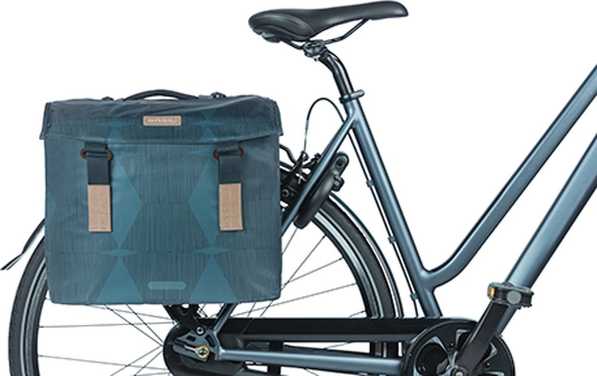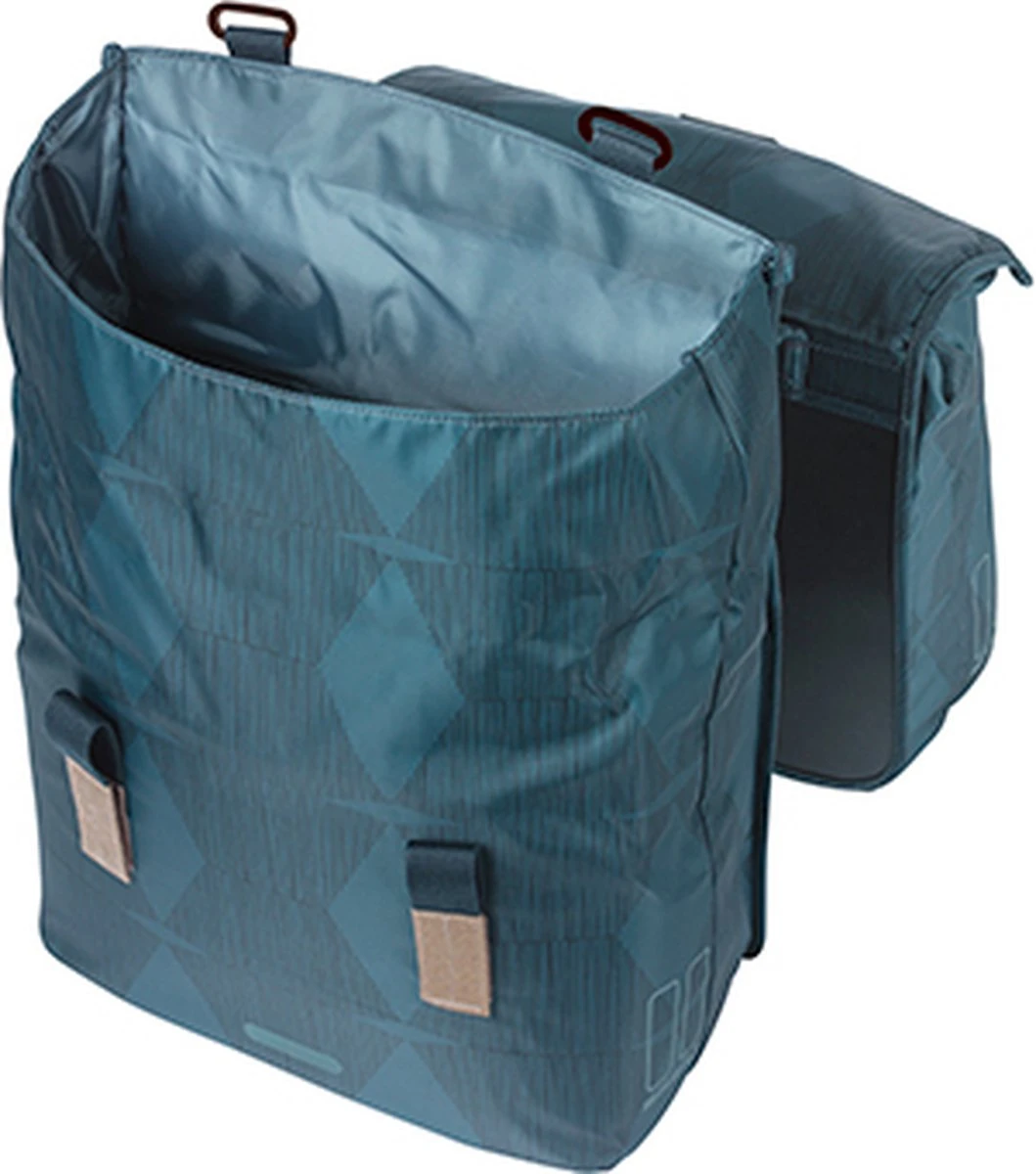 E staat voor Elegant en Eco bij deze dubbele fietstas. De tas is estate blue van kleur en heeft een inhoud van 40 tot 49 liter. Daarom is de fietstas ideaal voor een bezoek aan de markt of de boekenwinkel. Het binnenritsvak is ideaal om je portemonnee, sleutels of andere waardevolle spullen in op te bergen.