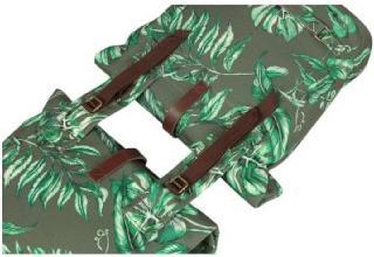 Met de Basil Ever-Green kies je voor een duurzame en bijzondere dubbele fietstas! De trendy botanische print op de tas is handgeschilderd door de getalenteerde Nederlandse illustrator Meggy Lemmens. En wist je dat de tas gemaakt is 40% gerecycled PET plastic? De waterafstotende stof voelt als katoen aan, maar bevat maar liefst 39 gerecyclede plastic flesjes van 350 ml. Daarnaast heeft de tas vegan lederen details en antiek bronzen afwerkingen. Daarmee is de Basil Ever-Green dubbele fietstas echt een statement! De Basil Ever-Green dubbele fietstas heeft een inhoud van 28-32 liter. De waterkerende vouwsluiting is met een musketonhaak te verstellen. Zo kun je dus inhoud van de tas vergroten naar 32 liter. Daarnaast neem je extra spullen mee in het voorvak dat je kunt sluiten met een magneet. Heb je veel en zwaardere spullen in je tas? Dan kun je de tas combineren met de Basil Afstandhouder (apart verkrijgbaar). Deze houder voorkomt dat de tas in de spaken van je fiets komt. Je bevestigt de Basil Ever-Green dubbele tas eenvoudig op je bagagedrager met het Universal Bridge systeem. Dankzij het Universal Bridge systeem kun je kiezen uit hoe je de tas wilt bevestigen. Het bevestigen kan met de voorgemonteerde riempjes. Of in combinatie met het Basil DBS systeem (afneembare bagagedragerplaten) of een adapterplaat zoals MIK. Beide systemen dien je apart aan te schaffen. Eigenschappen: Compacte en toch ruime dubbele fietstas met een inhoud van 28-32 liter. Met het Universal Bridge systeem bevestig je de fietstas gemakkelijk op je bagagedrager. Alle zijden van de tas zijn voorzien van reflectie. Dat maakt je beter zichtbaar. Gemaakt van duurzame materialen. Bijzondere handgeschilderde botanische print.