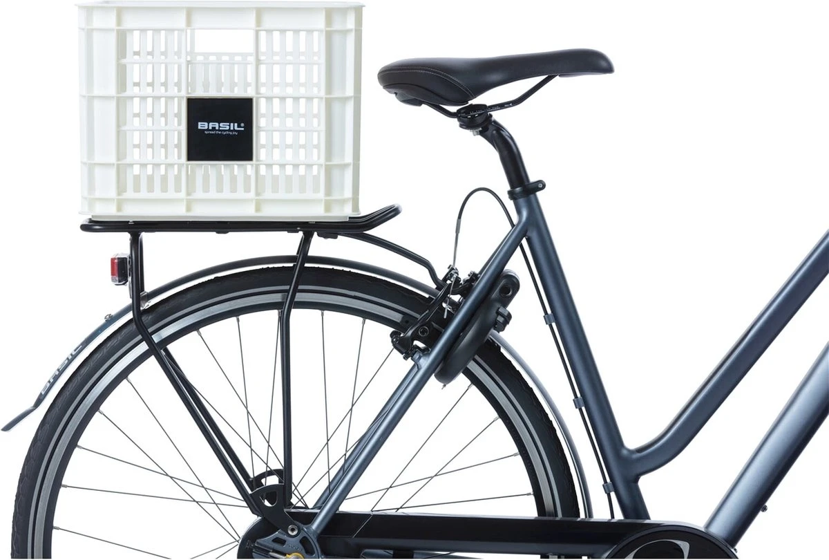 De krat kun je op meerdere manieren bevestigen. Voor een vaste montage kun je gebruik maken van de Basil Crate mounting set. Wil je de mand afnemen? Kies dan voor bevestiging met een adapterplaat. De krat is namelijk ook geschikt voor MIK, Racktime of AtranVelo adapterplaten. Deze adapterplaten dien je apart aan te schaffen.