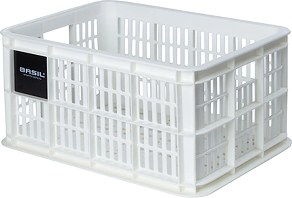 De Basil fietskrat in de maat S is een witte fietskrat voor op een dames-, heren – of kinderfiets. De fietskrat is gemaakt van duurzaam materiaal en heeft een inhoud van 17,5 liter.