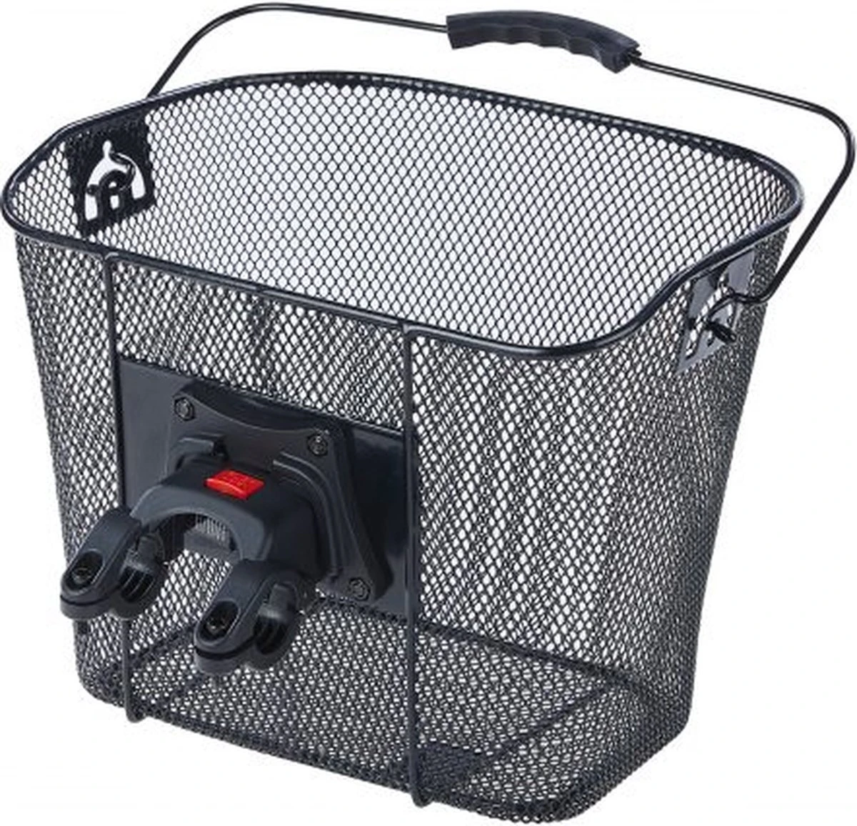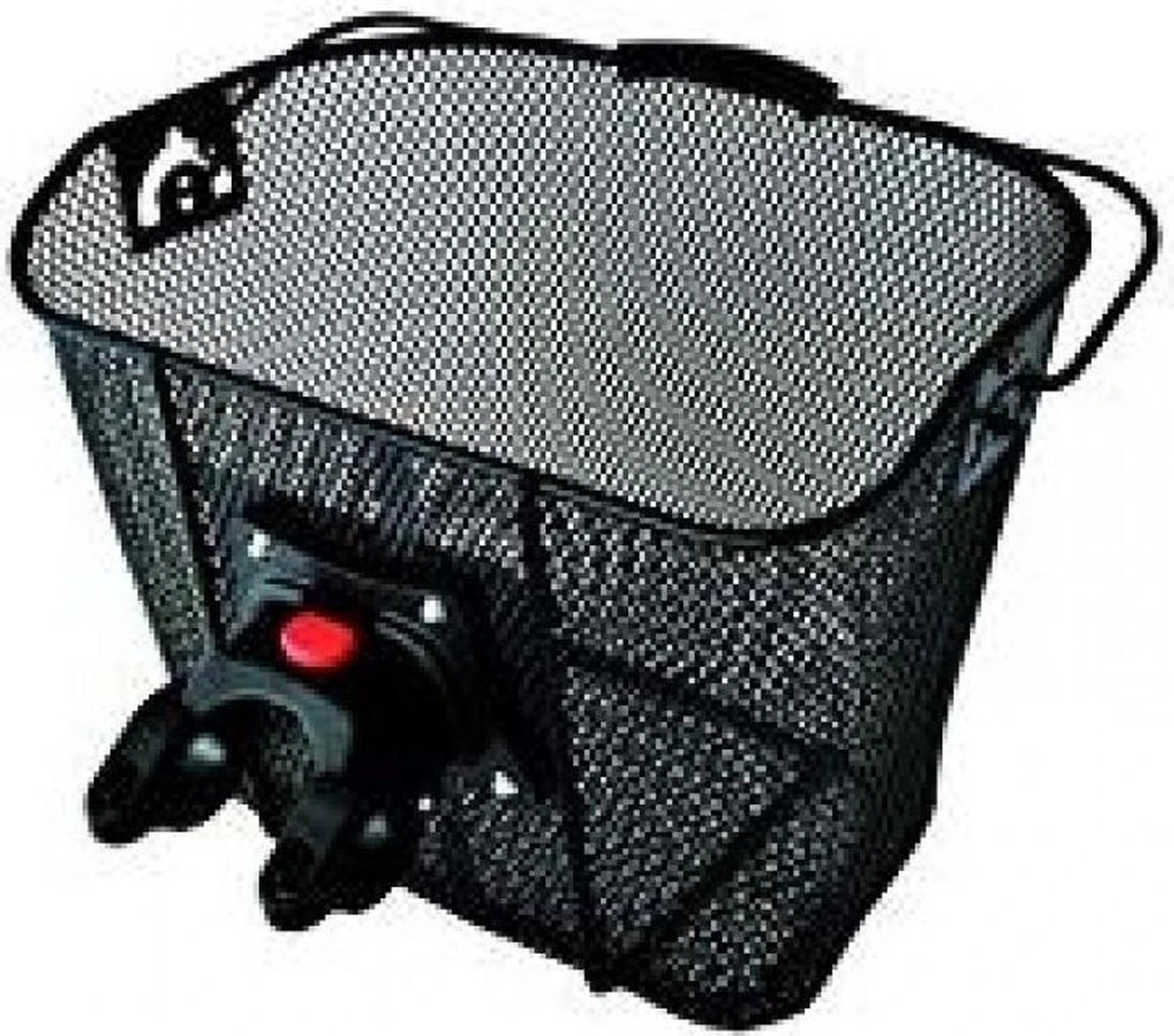 Fietsmand City Express Klick Pro met fijnmazig geplastificeerd staalraster. Uitgevoerd met handvat, snelbevestiging en ontgrendeling met klikbevestiging op het stuur. Afmetingen: – Breedte 330 mm – Diepte: 260 – Hoogte: 240 mm TÜV / GS getest