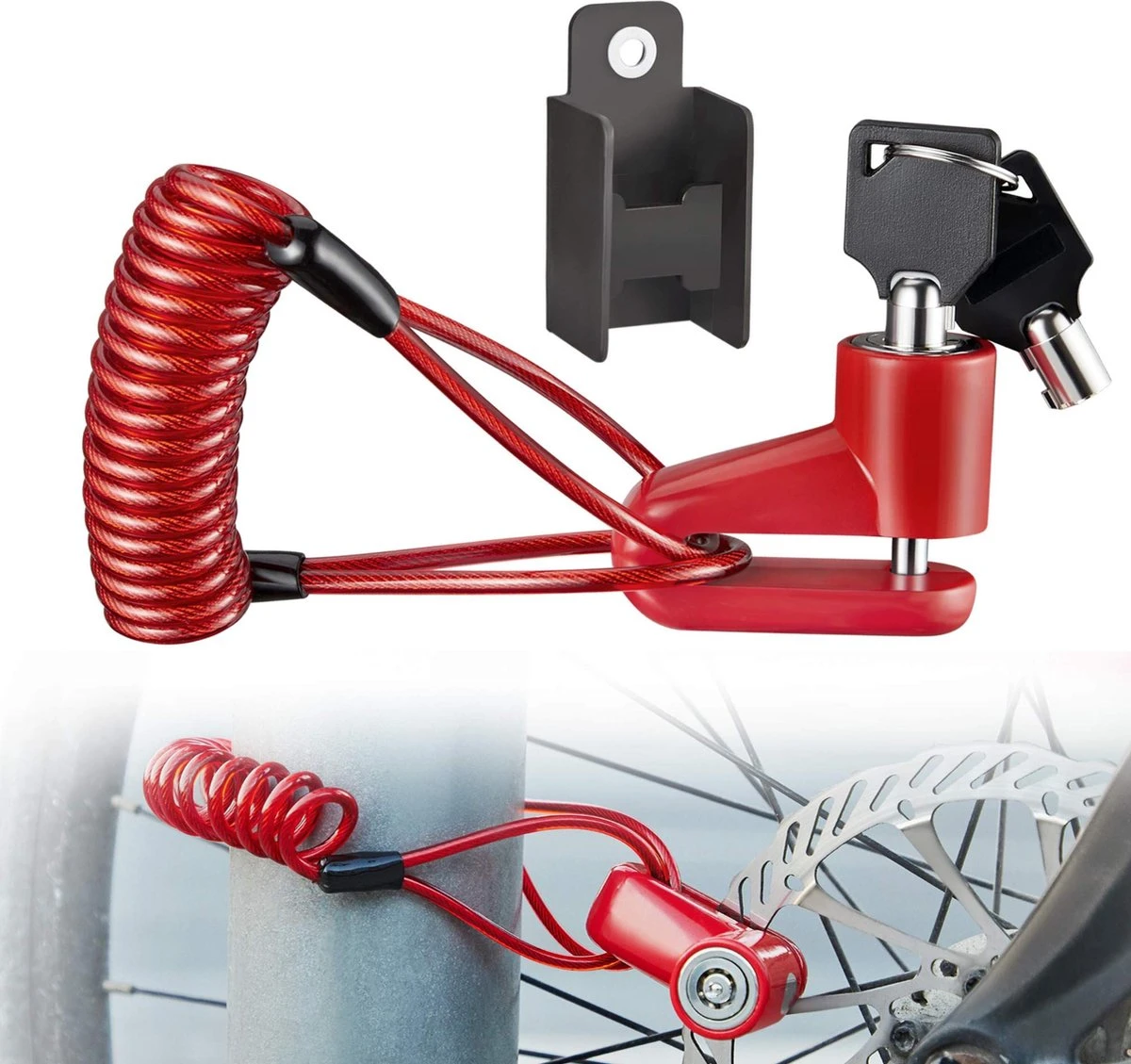 ✔ Inhoud Verpakking: 1 x kunststof houder met schroeven set, 1 x scooter schijfrem slot, 1x 120cm herinneringskabel, 2 x sleutel