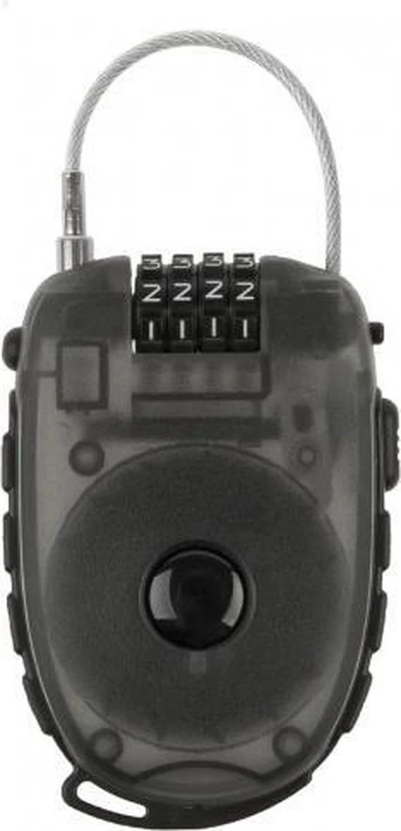 Codeslot met 4 cijfers Met aanpasbare vergrendelcode Kabel met een lengte van 90 cm en een doorsnede van 2,4 mm Donkere, transparante behuizing Op M-Wave eurohole kaart