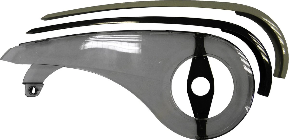 De AXA Scope2 is een modern vormgegeven kettingscherm met eenvoudige montage. Beschermt uw kleding tegen beschadigingen, en beschermt uw ketting tegen weersinvloeden als vocht en vuil. Het elegante ontwerp wordt gecompleteerd door de gekleurde strip die de montagegaten afdekt. U kunt ter plekke beslissen welke kleur strip u gebruikt, omdat zowel de zilveren als de zwarte strip met het scherm meegeleverd worden. De Scope2 is geschikt voor montage op single en triple tandwielen met 48 tanden. VEILIGHEID Optimale bescherming van uw kleding Langere levensduur ketting doordat deze beschermd is tegen vocht en vuil COMFORT Eenvoudige montage door crankbeugel en geintegreerde achter bevestiging TECHNIEK Geschikt voor 48 tands tandwielen Materiaal scherm polycarbonaat (light smoke) en ABS strips (zilver en zwart)