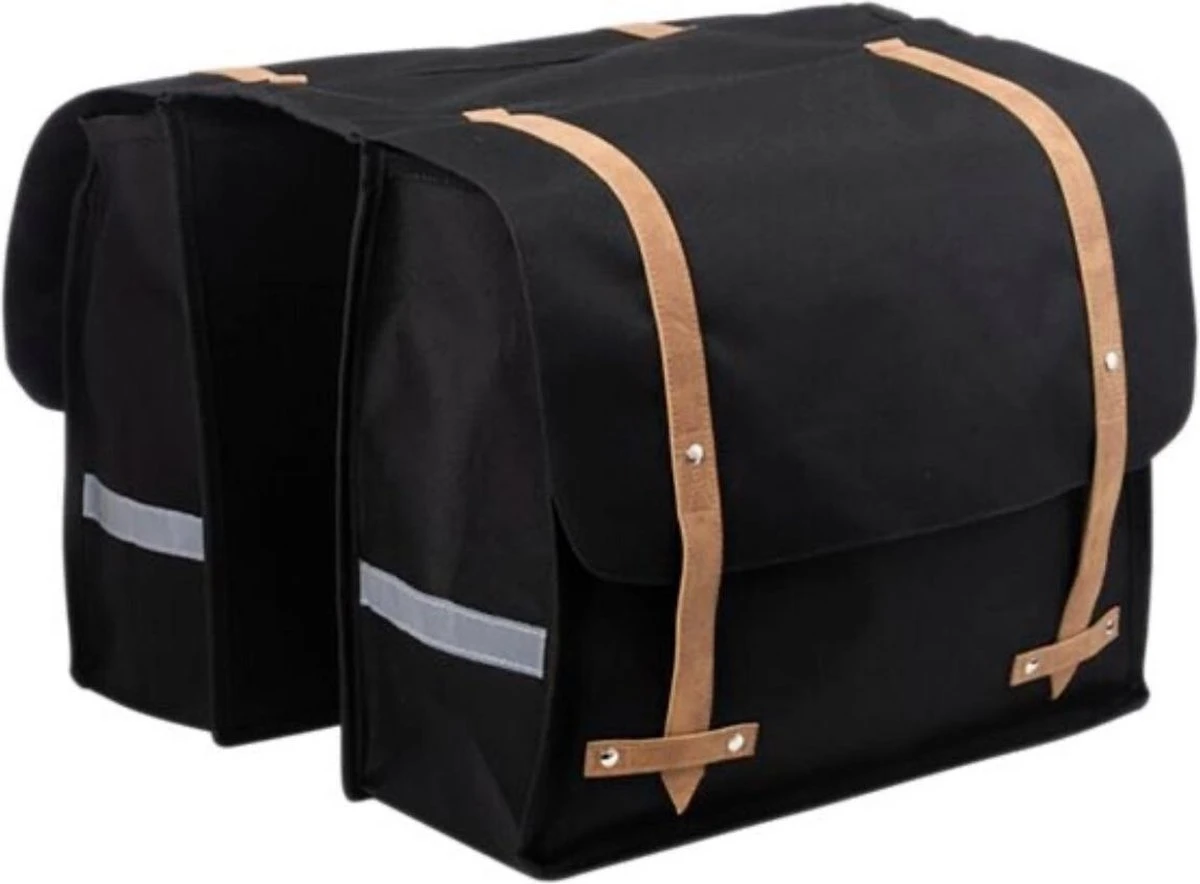 Handige dubbele fietstas die aan beide kanten van de bagagedrager hangt.