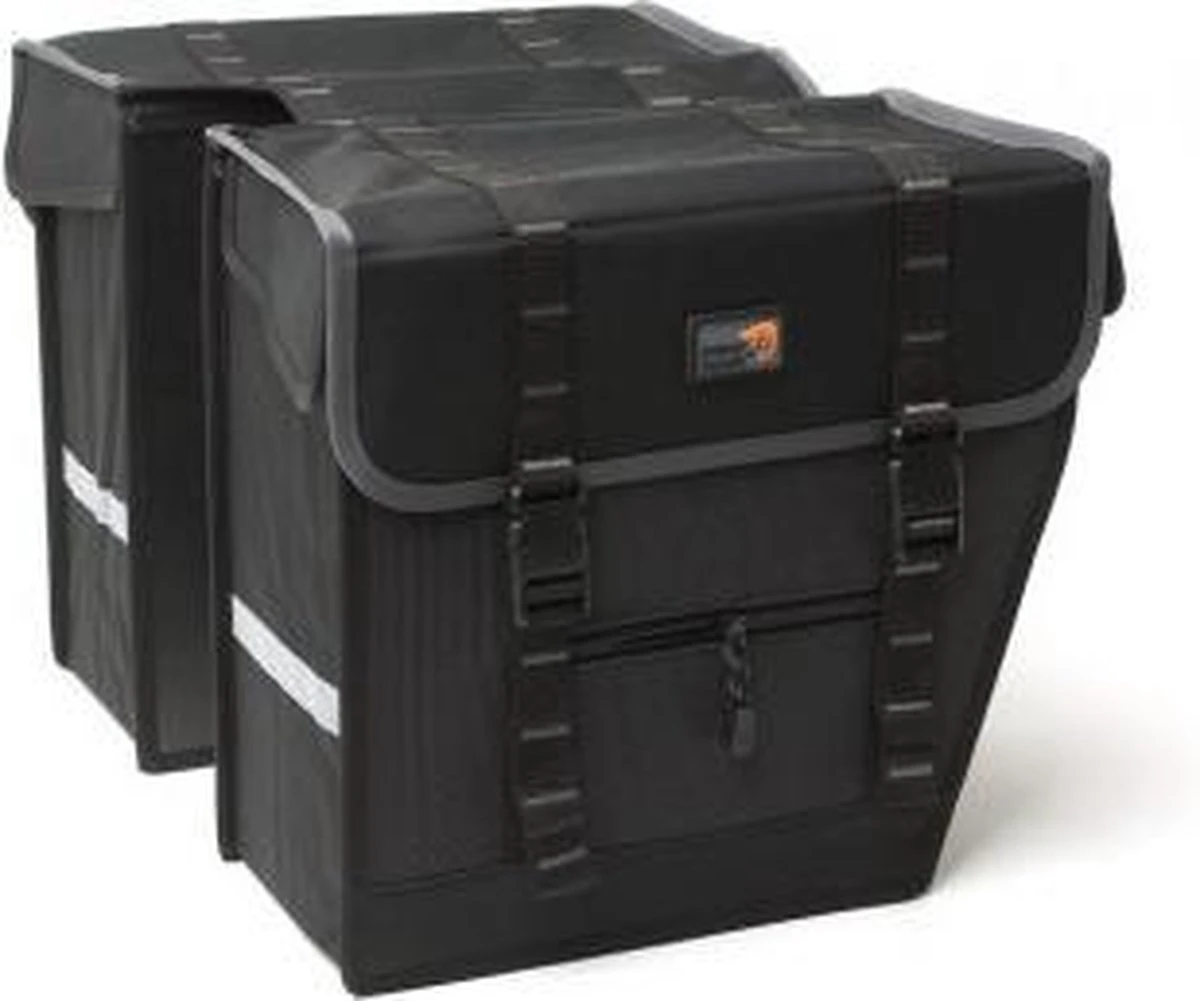 Deze stevige dubbele fietstas is afgeschuind zodat je niet met je voeten tegen de tas aan trapt. Je hebt altijd ruimte om spullen mee te nemen op de fiets.