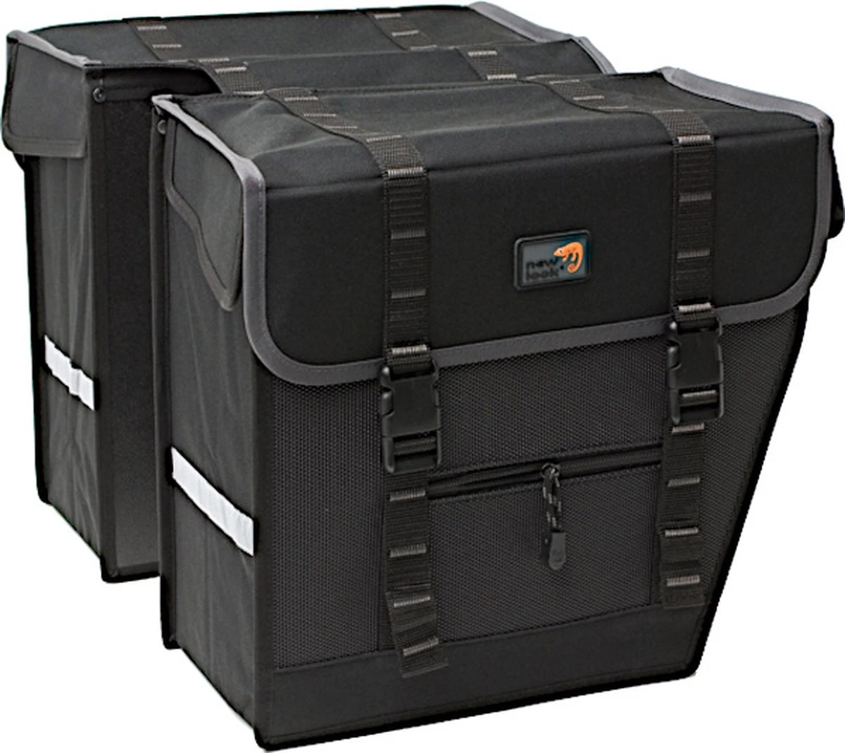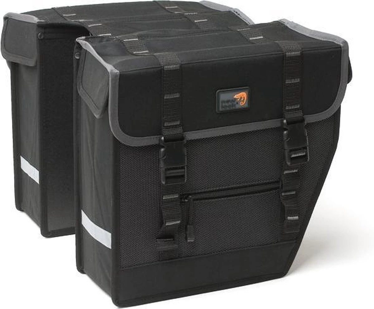 De tas heeft aan beide kanten een hoofdvak en op de voorkant nog een extra ritsvak. Je sluit het hoofdvak met kliksluitingen. Door deze handige indeling neem je alles eenvoudig met je mee. Of je nu dagelijkse boodschappen gaat doen, naar je werk of school fietst of gewoon een recreatief ritje gaat maken.