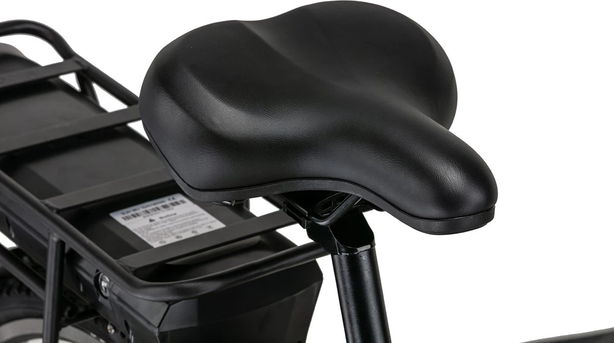 Elektrische fiets met een 10Ah accu en 250watt motor in het achterwiel. Deze combinatie zorgt voor een actieradius tussen de 40-65km. De fiets beschikt over een aluminium frame met een gewicht van 29kg. De fiets is uitgevoerd met 7 versnelling van Shimano en 5 speeds trapondersteuning. De fiets wordt standaard geleverd met een bagage drager.