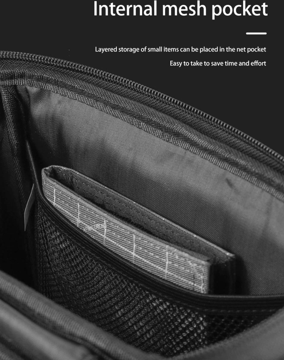 Aan de bovenzijde van de tas kan men de telefoon, kaart of navigatie waterdicht opbergen.