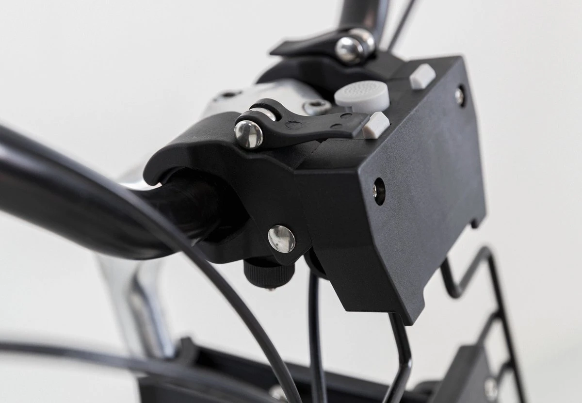 – De houder klemt om het stuur, waarna je de mand op het frame kunt plaatsen